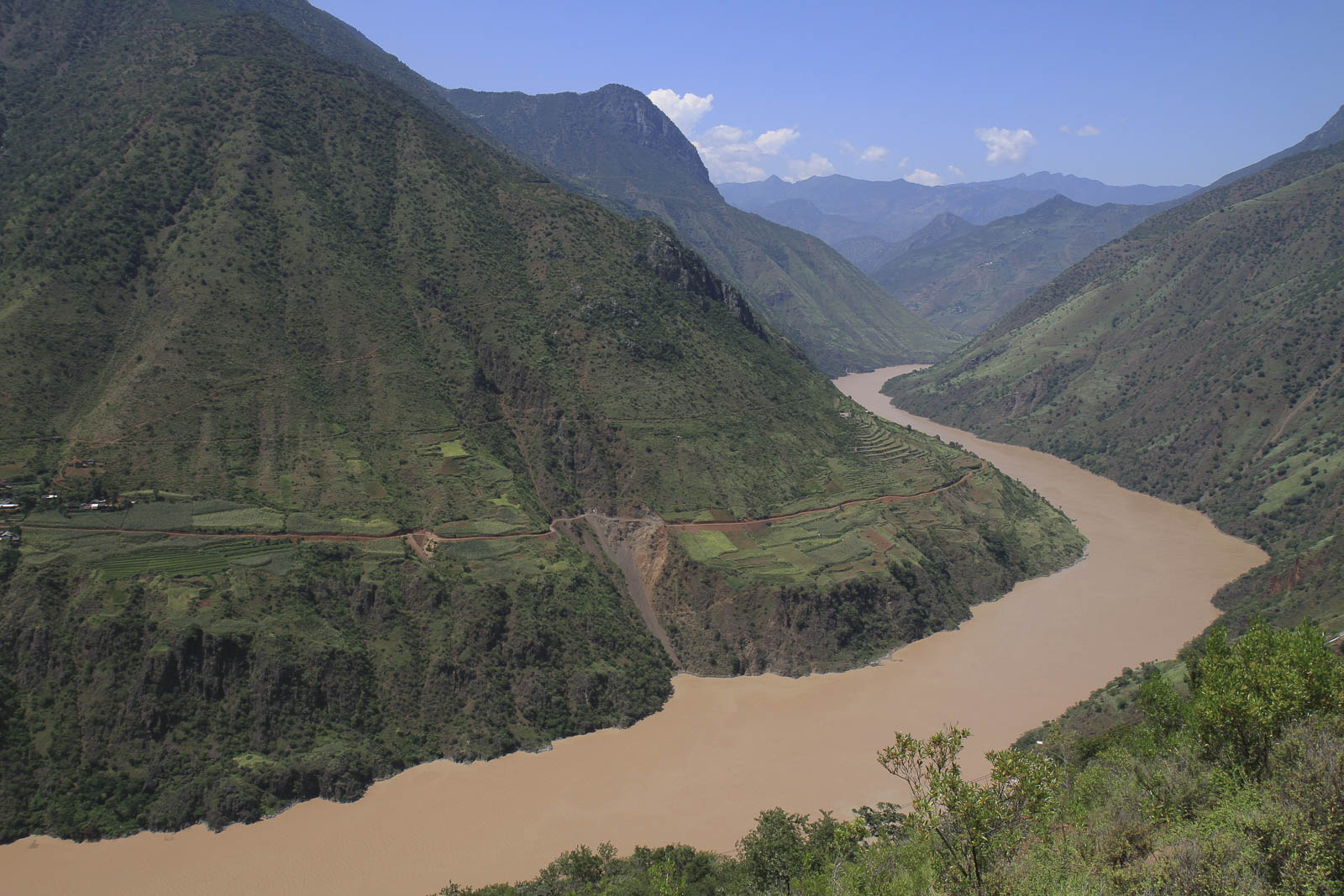 Nadat Wims darmen weer in de juiste plooi waren gevallen, konden we ons fietstochtje hervatten. We trokken richting Lugu Lake, een meer dat de grens vormt tussen de provincies Sichuan en Yunnan. De bergen in zuidwest Sichuan zijn rijk aan grondstoffen. En grondstoffen zoals bv steenkool & ijzererts zijn nu net wat China nodig heeft om zijn groei te bewerkstelligen. Mankracht is hier nog steeds goedkoper dan de inzet van machines en dus klaren vele duizenden mijnwerkers de klus. Ook de levensomstandigheden boven de grond, in donkere, tochtige houten barakken zijn weinig benijdigenswaardig. Dat ons beider tijdskrediet een veelvoud is van hun maandloon doet ons nog maar ‘ns beseffen dat we het getroffen hebben met een geboorteplaats in België.