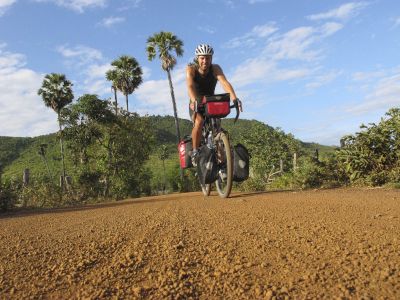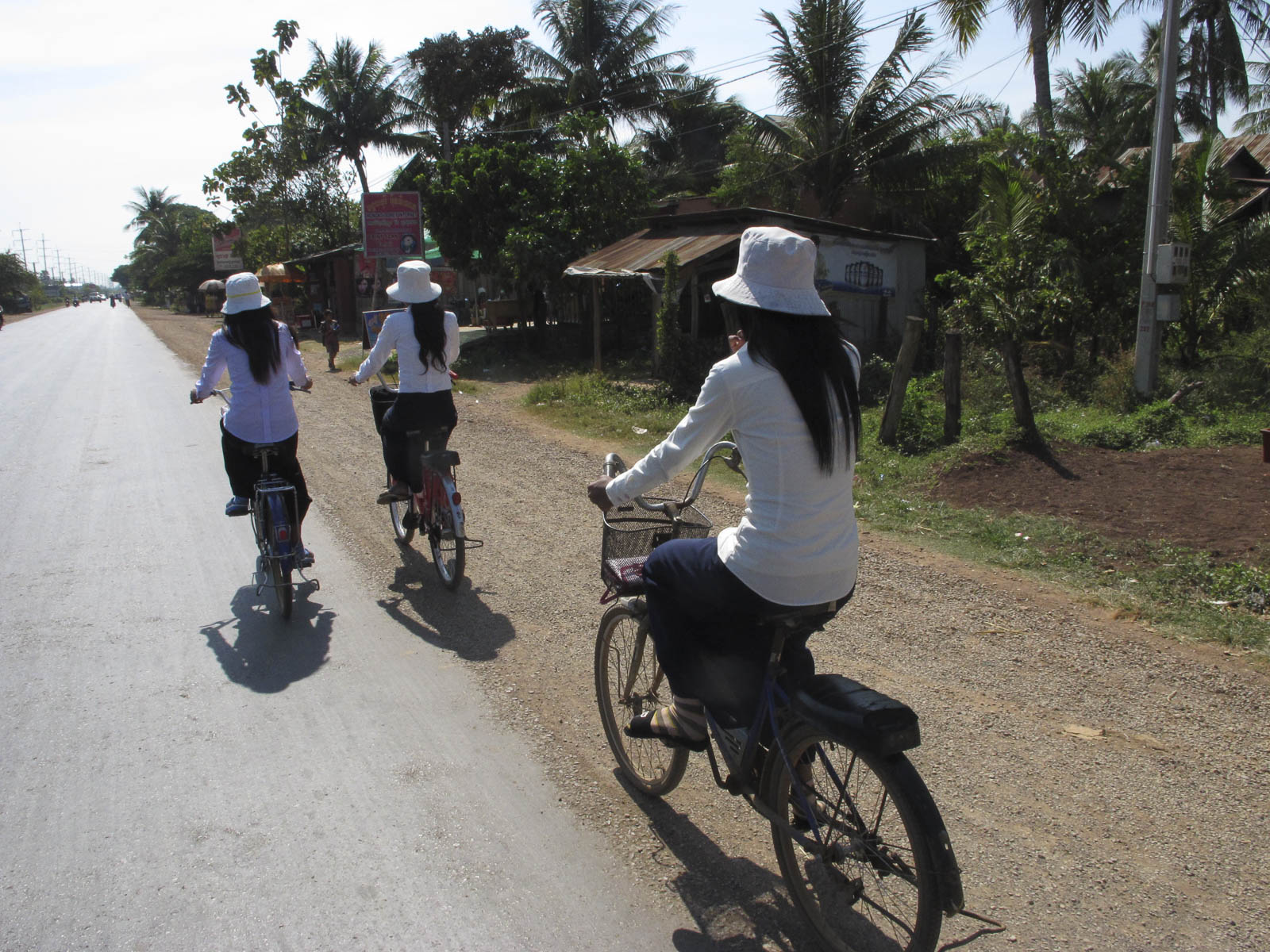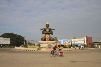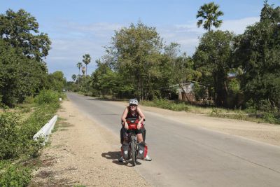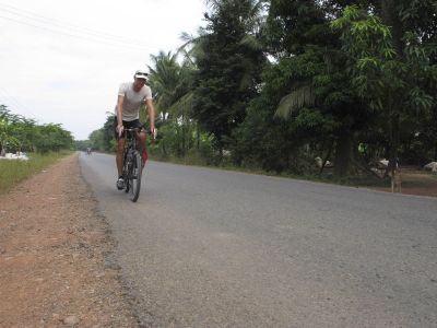 Na een vlotte afhandeling van de grensformaliteiten fietsten we Cambodja binnen. In de voormalige Franse kolonie kwam in 1975 de ‘Khmer Rouge’ aan de macht. Pol Pot en de zijnen hadden het plan opgevat om Cambodja om te vormen tot een marxistische coöperatieve landbouwstaat. Ze gingen hierbij drastisch te keer, tijdens het bijna vier jaar durende schrikbewind zijn er naar schatting 3 miljoen Cambodjanen of bijna een derde van de bevolking omgekomen. Een bril of zachte handen waren voldoende blijk van intellect en bijgevolg een reden om te worden geëxecuteerd.