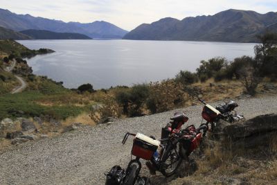 De voorbije weken fietsten we ook nog over de Dansys pass en een stuk van de Central Otaga Rail trail, we daalden af in de Skippers Canyon (en klommen er terug uit) en volgden een singletrack langs lake Wanaka. De natuur blijft hier zeer de moeite, de landschappen zijn heel gevarieerd en bovenal heel toegankelijk. Je hoeft hier geen hoge cols over om in een spectaculaire omgeving terecht te komen (al kan die keuze natuurlijk wel vrijwillig worden gemaakt). Met zoveel schoonheid maar vooral de daaraan gekoppelde verwachtingen raden we toekomstige reizigers wel op te letten voor het Paris syndrome.