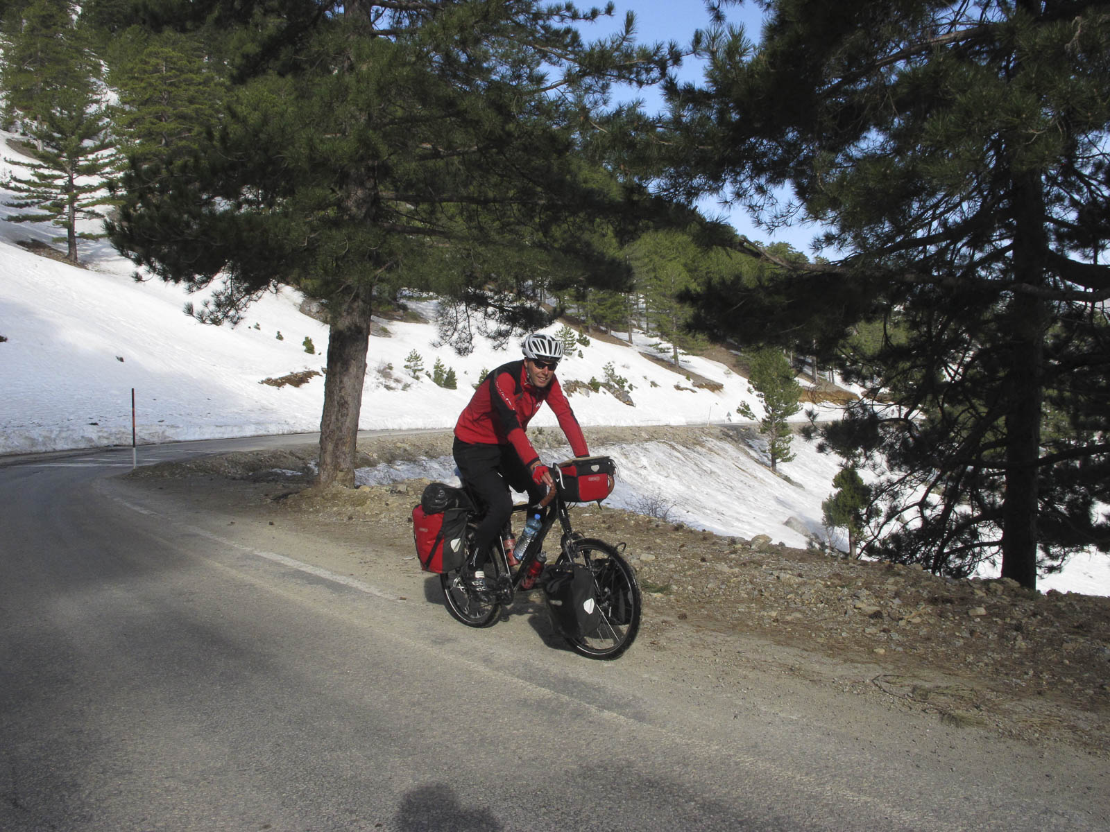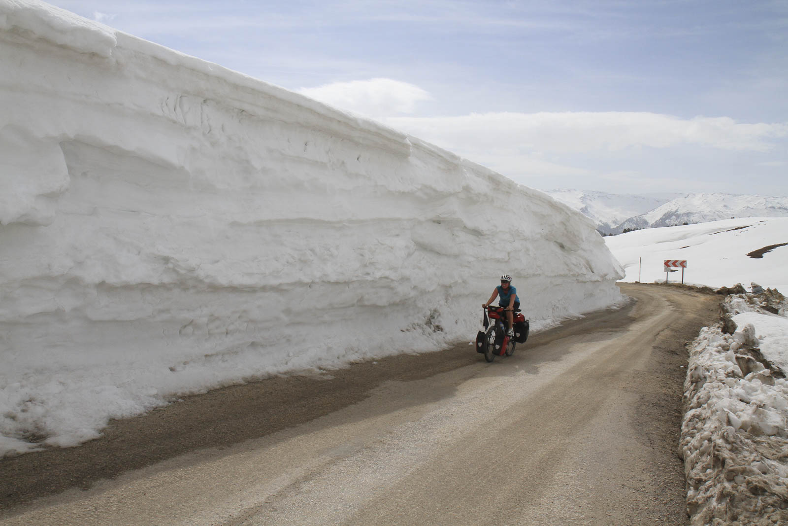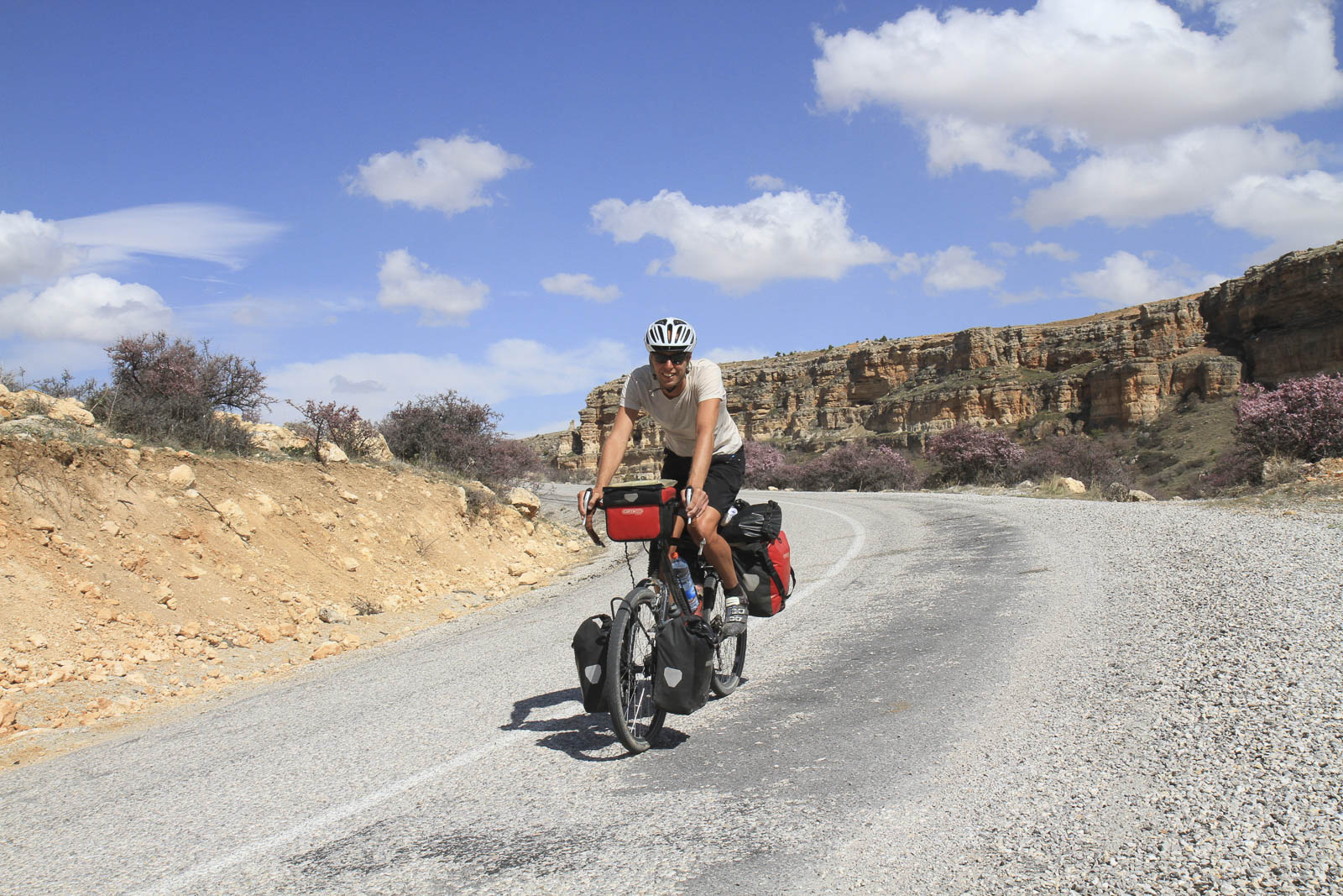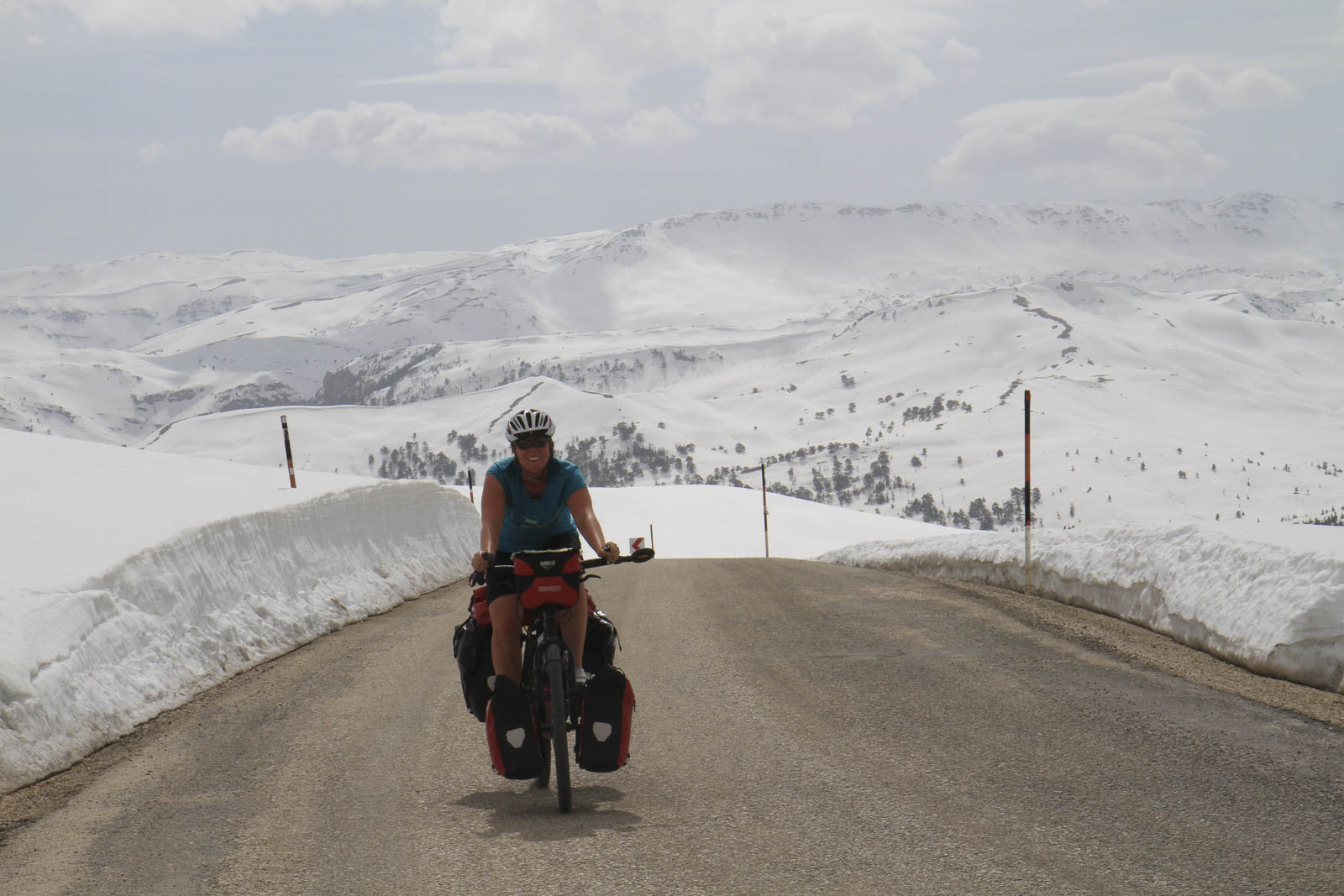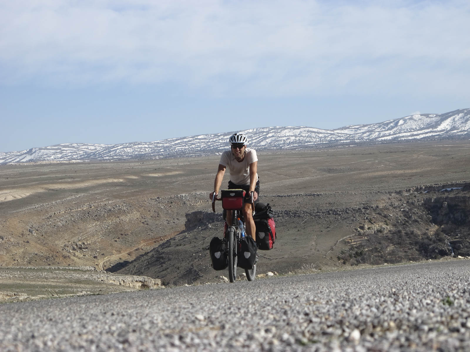 De Mediterrane kust bleek overigens wel een uitstekende start te zijn van het derde (en tevens laatste) deel van onze trip. We kregen de afgelopen dagen een enorm gevarieerd landschap voorgeschoteld. Na het azuurblauwe van de Middellandse Zee moesten we de bergen over om het Turkse binnenland te bereiken. Er volgde een, voor ons ‘mooiweerfietsers’, wat surrealistische etappe door de sneeuw onder een stralende zon. Om het lot niet verder te tarten proberen we de sneeuwgrens de komende dagen toch te vermijden. Ondertussen bevinden we ons op een 1000m hoog plateau, naast steppe lag er eerder toevallig ook al een wonderschone canyon op onze route.