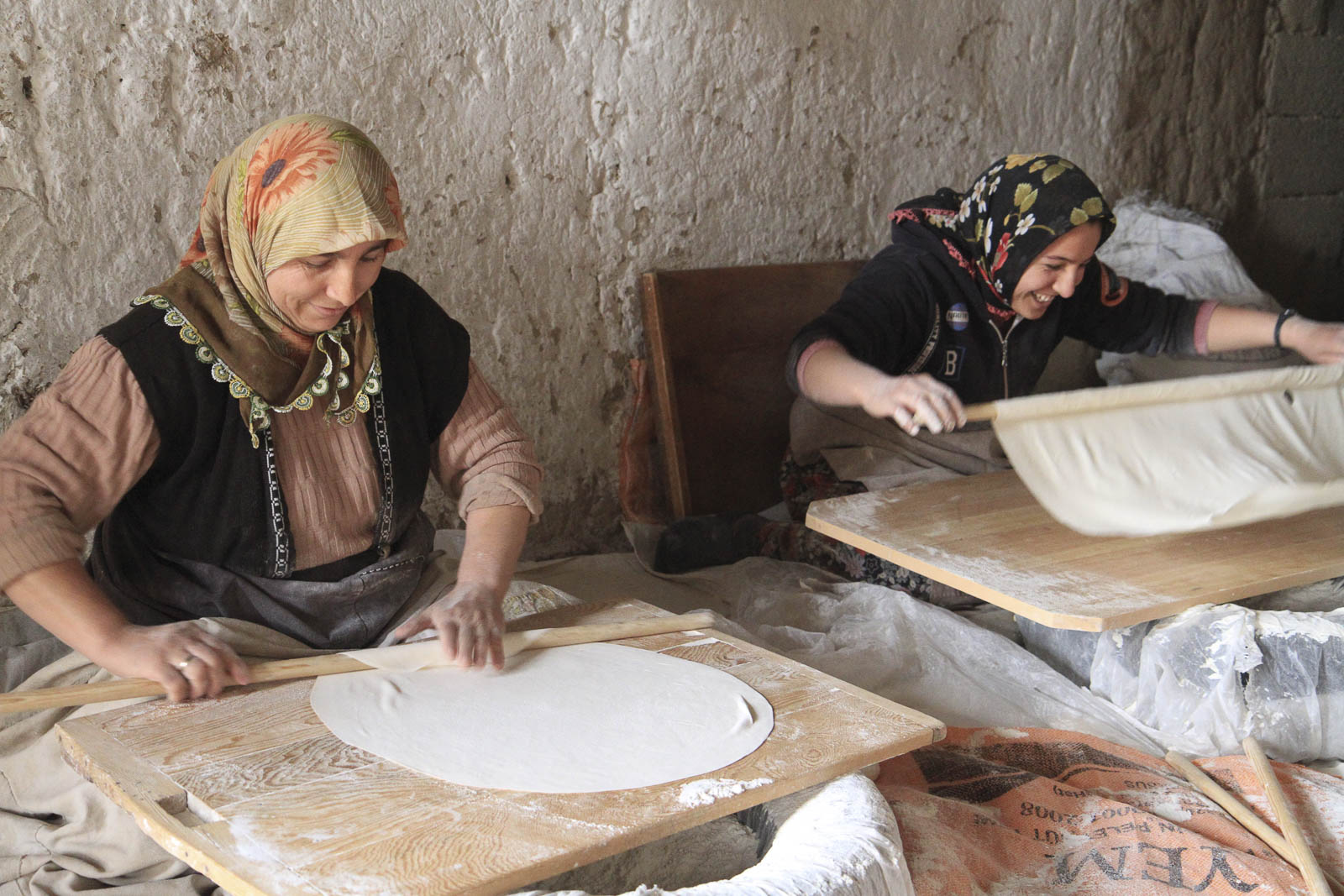 Onze voortgang wordt wel eens meer ‘gehinderd’ door de Turkse gastvrijheid. Voor we het goed en wel beseffen, staan we thee te drinken bij de ‘kuaför’, houdt de ‘jandarme’ ons tegen en biedt de arm der wet ons een pralientje aan of worden we naar een lemen hut geleid waar enkele vrouwen gözleme voor het hele dorp aan het maken zijn. Nog een geluk dat we hier geen strikte deadline hebben.