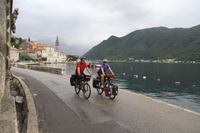 Op de internationale luchthaven van Tivat (die bestaat) dronken we alvast een grote kop koffie, want we hadden veel bij te babbelen. Belevenissen met wilde dieren in ontbinding, het spannende verslag van de nachtelijke legeroefening, avonturen over en met andere fietsers en reizigers, anekdotes van dodgy douaneposten… De verhalen kwamen uit allerlei hoeken en spleten gekropen.