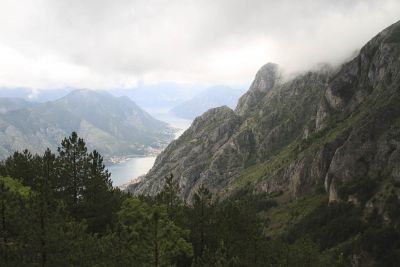 Na Tivat ging het in de regen rond de mooie baai naar het ommuurde stadje Kotor, waar ooit de Venetianen de plak zwaaiden. De volgende dag klommen we de 25 haarspelden (flexibel zijn!) naar Lovcen, in de regen.