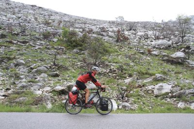 Het kleine Balkanland zou een zonzekere bestemming zijn eind mei, zo had ik gehoopt. Ik had, meer uit schrik voor overbepakking dan uit optimisme, muts noch regenbroek mee voor tijdens het fietsen. Dan zou het ook wel niet regenen, dacht ik. Zo werkt het klaarblijkelijk niet.