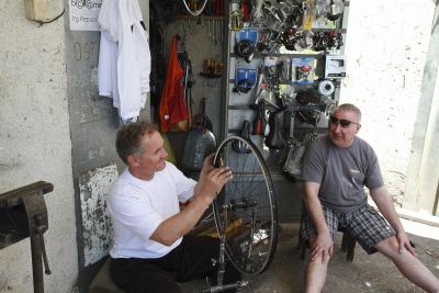 Wat een leuk weerzien met Wim en Tine na meer dan tien maanden! Ik vond ze ondanks die 18.000 kilometer niet echt veranderd. Ja, de koersbroekjes staan een beetje afgetekend op de gespierde dijen, dat moet gezegd, maar ik herkende ze meteen toen ze op hun mooie Cannondales kwamen aangereden.