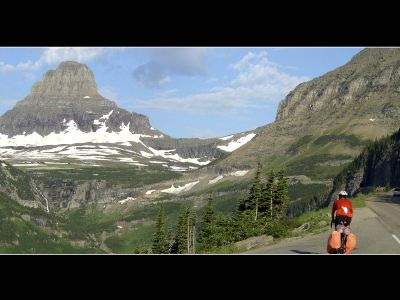 Vandaag stond de Logan Pass op het programma, goed voor 6646 feet. In het park zijn er, door de grote toeloop van koning auto, enkele fietsrestricties van kracht. Tussen 11am en 4pm mag je als fietser niet over de pas, daarom om 6u opgestaan en om 7u samen met Larry aan de opdracht begonnen. Larry, een gepensioneerde fietser die van zijn vrouw ieder jaar 1 maand vrijaf krijgt, was ik al ‘ns tegengekomen in Waterton National Park en gisteren stond hij eveneens op dezelfde hiker & biker spot in de campsite van Rising Sun.