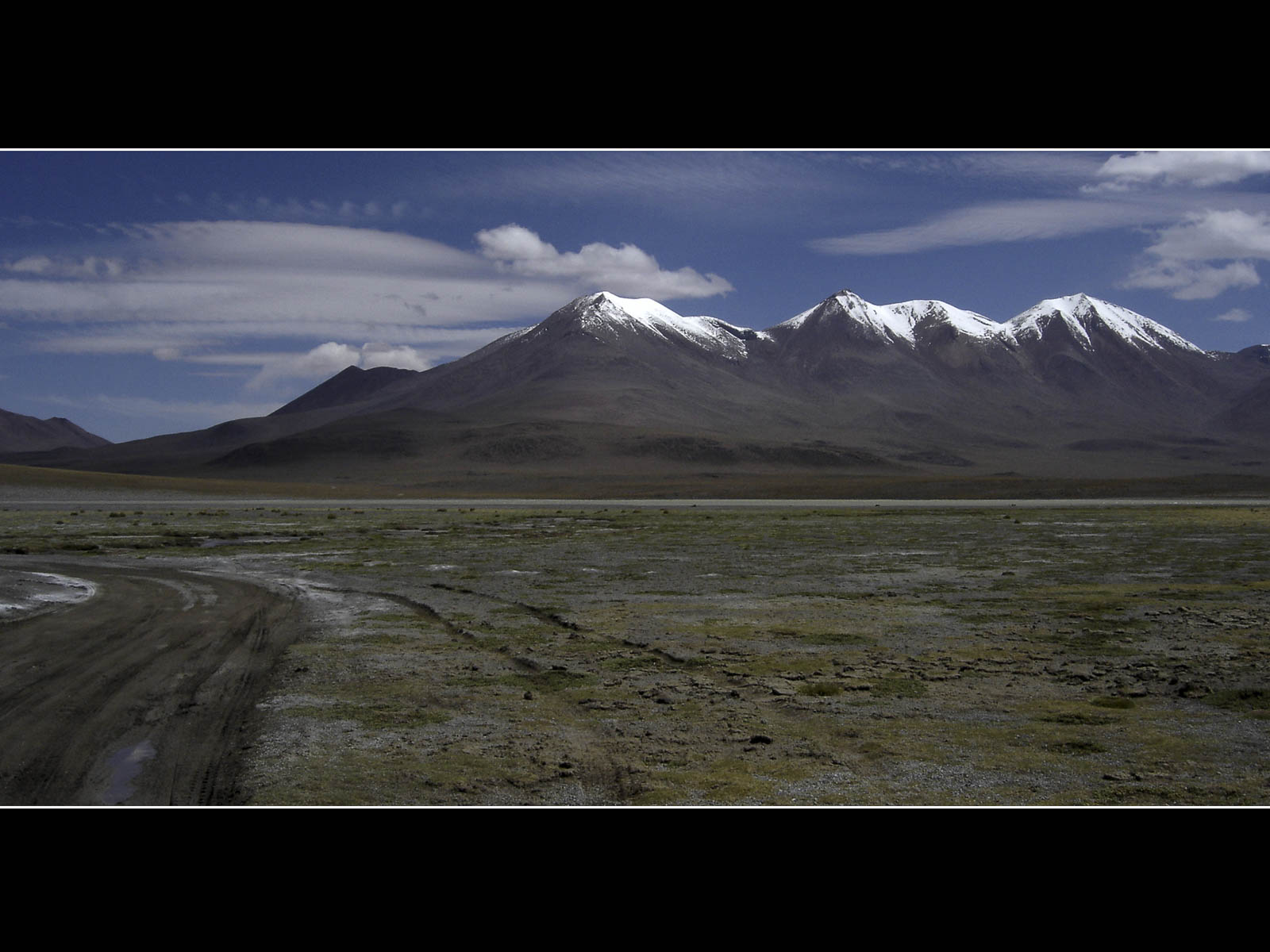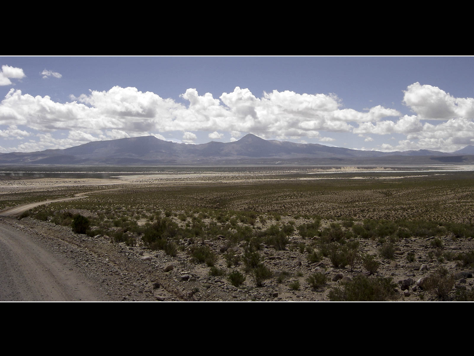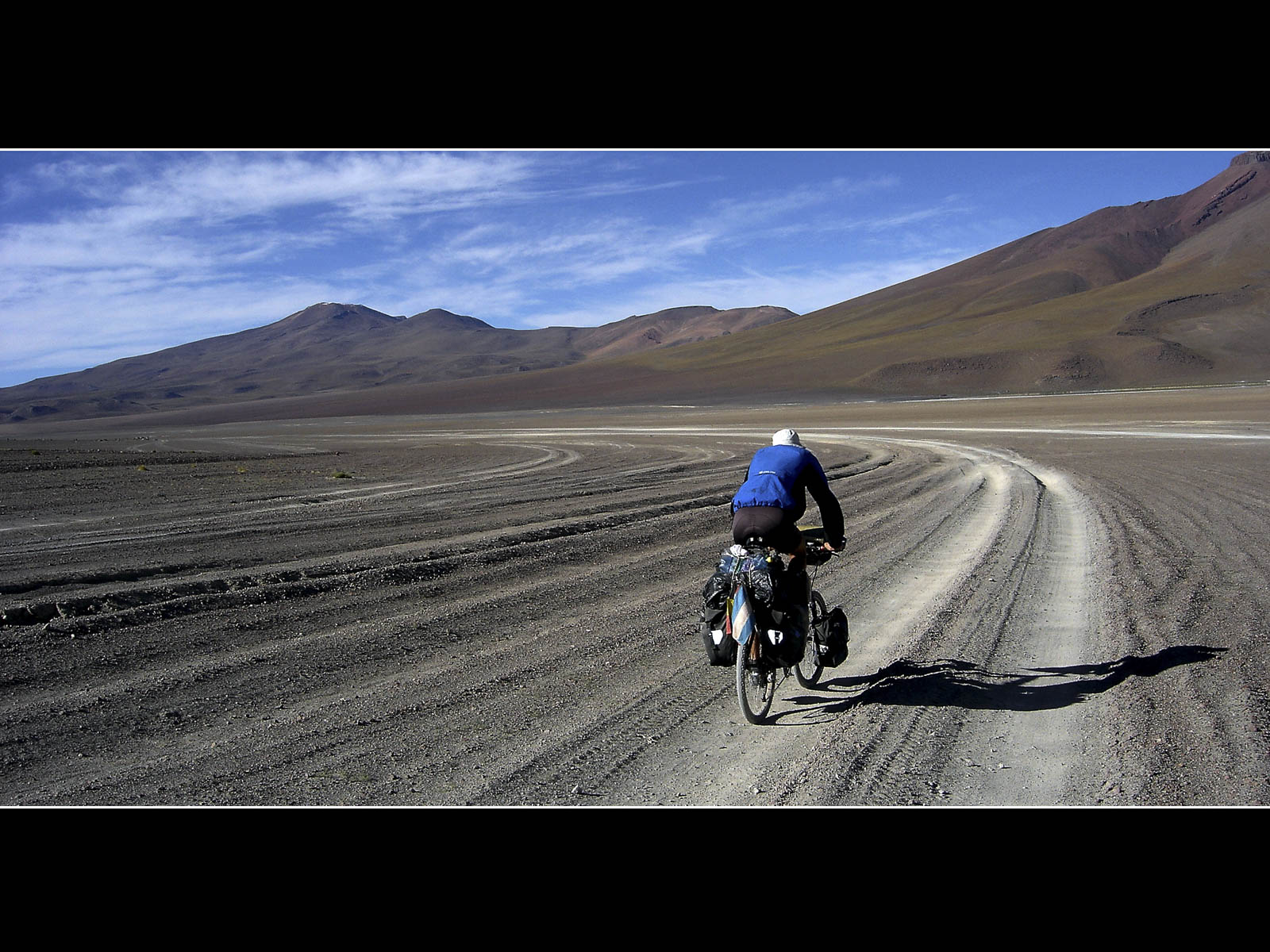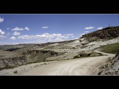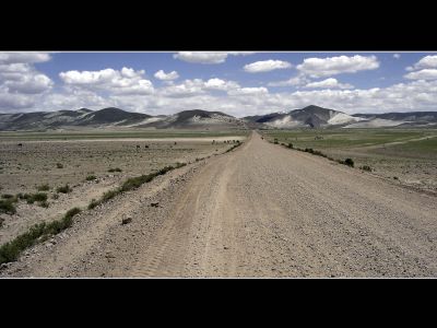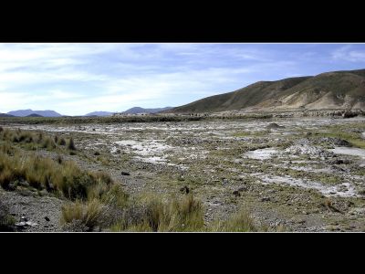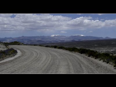 Deze morgen konden we de altiplano onder een helblauwe hemel betreden. De fietsomstandigheden waren ideaal: zon, een min of meer vlakke weg en rugwind. Ik kon me dan ook maar moeilijk intomen. Het strakke tempo wist Niklaus echter maar matig te appreciëren, zijn aanslepende maagproblemen zorgen momenteel voor een dip in zijn fysieke conditie. De altiplano biedt misschien weinig variatie maar ik genoot niettemin de hele dag van de strakke-lijnen-natuur. De omgeving was zeer gelijkend aan deze van de high plains in Montana en Wyoming in de Verenigde Staten.