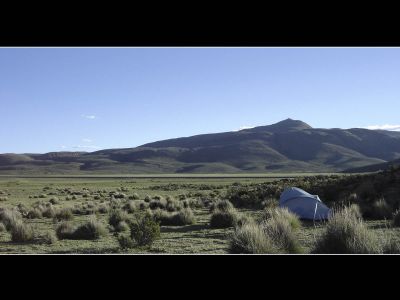 Maagproblemen blijven Niklaus parten spelen. Hij zal de komende dagen wat rust nemen en daarna via een alternatieve route naar Uyuni fietsen. Indien alles volgens plan verloopt treffen we elkaar daar opnieuw binnen 5 dagen. Ik maak ondertussen een ommetje via Potosi. Normaliter zal ik er Jos Verwaest ontmoeten, hij fietste de afgelopen17 maanden door Zuid-Amerika. De altiplano was terug zonovergoten vandaag. Helaas leverde me dat gisteren 2 verbrande armen op met als gevolg dat ik de hele dag met mijn vest aan kon fietsen. De eerste125 kilometer tot in Challapata waren vlak. Ik fietste enkele uren aan een stevig tempo en bereikte mijn lunchpauze voor de wind de kop opstak. In de namiddag pakte ik het iets rustiger aan. Dit was geen domme zet daar het parcours heuvelachtiger werd. Niettemin, de kilometers vorderden vrij snel en de vermoeidheidsverschijnselen bleven uit. Mijn aantal rode bloedlichaampjes is ondertussen ogenschijnlijk tot een aangenaam hoog niveau gestegen. Na 180 kilometer altiplano-genot hield ik het voor bekeken, wanneer je alleen door zulke landschappen fietst lijkt alles nog net iets grootser. Op 4200m hoogte vond ik een schitterende kampeerplaats.