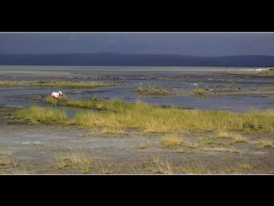 Villa Alota was de laatste gelegenheid waar we voedsel en drank konden inslaan voor de komende 3 of 4 dagen. Het aanbod was helaas tegenvallend, brood was er oa niet te vinden. We zullen de volgende dagen moeten doorkomen op een rantsoen van koekjes en bananen. 10 liter water zou de voornaamste dorst moeten lessen. We konden nog 25 kilometer gebruik maken van de nieuwe dirt-road in aanleg, daarna moesten we via een desvio invisible richting westen zien te geraken. Vanaf die splitsing verminderde de kwaliteit van de weg spectaculair (= understatement). Gelukkig bleef de kwaliteit van het natuuraanbod onveranderd mooi. In vergelijking met gisteren vorderden we maar matig. Naast de verschrikkelijke dirt-road en een doorgedreven stijgingspercentage kwam na de middag ook nog ‘ns de wind stevig opzetten. Toen rond 17u Laguna Hedionda tevoorschijn kwam hadden we een eersteklas excuus om de fietsactiviteiten van de dag te stoppen. De laguna baadde in schitterend licht en was voorzien van duizenden (volgens de politie honderden) flamingo’s, een mooiere kampeerplaats zouden we vandaag niet meer vinden.