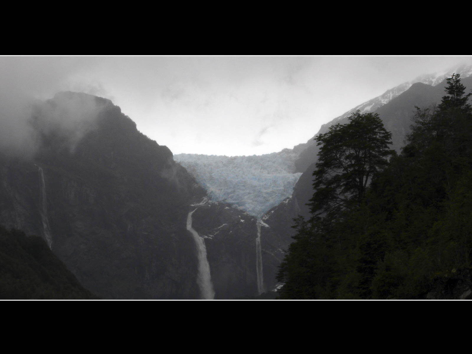 Na een maagvullend ontbijt verliet ik om 8u de fijne hospedaje, Tia Lety wenste me een droge dag toe. De bewoners van Zuid-Chili behoren zeker niet tot de rijkste klasse van hun land, de behuizing in deze vochtige en kille omgeving is meestal zeer ‘bescheiden’. Ook hier hebben ‘primaire behoeften’ een andere invulling als bij ons. In mijn Footprint werd de omgeving rond La Junta als stoffig en vlak omschreven. In de praktijk bleek deze eerder modderig en heuvelachtig te zijn. Een nieuw mirakel van paus JP II? Na 45 kilometer fietsen bereikte ik Poyuguapi, de gegoeden onder jullie kennen deze plaats ongetwijfeld van zijn luxueuze thermas. Overnachten kan er al vanaf 250$, waarom ze zo’n info in een Footprint of Lonely Planet dumpen is me alsnog onduidelijk. Na het inslaan van wat voedsel vervolgde ik mijn weg. Voor een blik op de Colgante gletsjer moest ik slechts 5 kilometer omrijden, deze zouden vandaag het verschil niet maken. Ondanks de laaghangende bewolking was het zicht op het blauwe ijs best spectaculair. De Carretera Austral ging verder in stijgende lijn. Ik herinnerde me vaag Kelly McKeans woorden ivm een col van 500 meter. Op dat moment had ik gedacht: “ja goed, 500 meter en verder”. Het was pas na een halfuur klimmen dat ik doorhad dat het over 500 stijgingsmeters ging. Dat veranderde de zaken enigszins, zeker toen daarenboven de dirt-road door hevige regens in een rivier werd herschapen. Ik stelde het aantrekken van mijn regenvestje uit tot ik de col had bereikt. Dit bleek inderdaad rijkelijk laat te zijn. Doornat begon ik aan de afdaling. Wegenwerken over een afstand van 10 kilometer zorgden hierbij voor een mooi egaal bruine tint. Mijn ketting haperde van ongenoegen. Door de onderschatte col begon ik ondertussen in tijdnood te geraken. Het aantal uren beschikbare daglicht krimpt hier snel. Kamperen in doorweekte toestand vond ik geen optie en dus moest ik Villa Amengual zien te bereiken. Tien kilometer voor het dorp moest ik een nieuwe col over, het was duidelijk dat vandaag geen cadeaus werden uitgedeeld. Ik haalde het uiteindelijk net. 142 km dirt-road in een etmaal, een unicum tijdens deze trip. Moe maar voldaan …