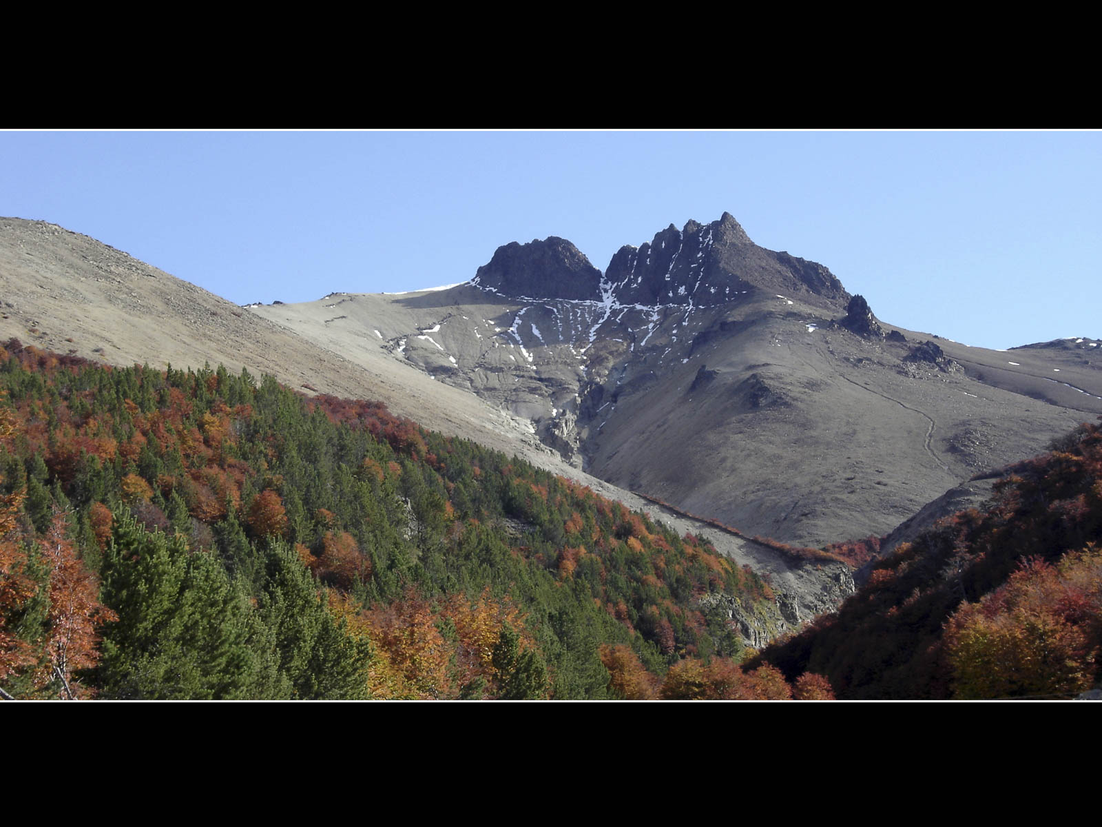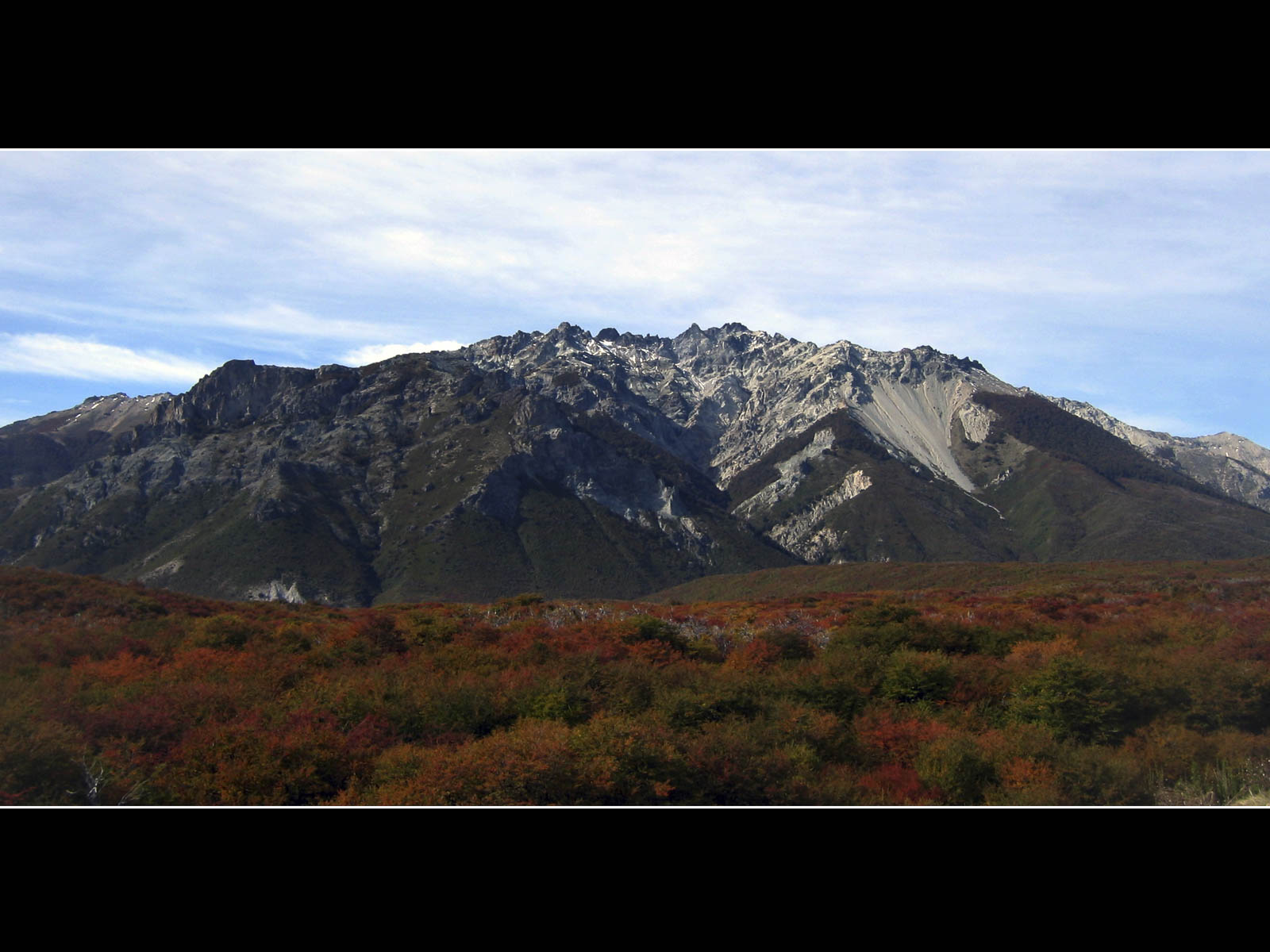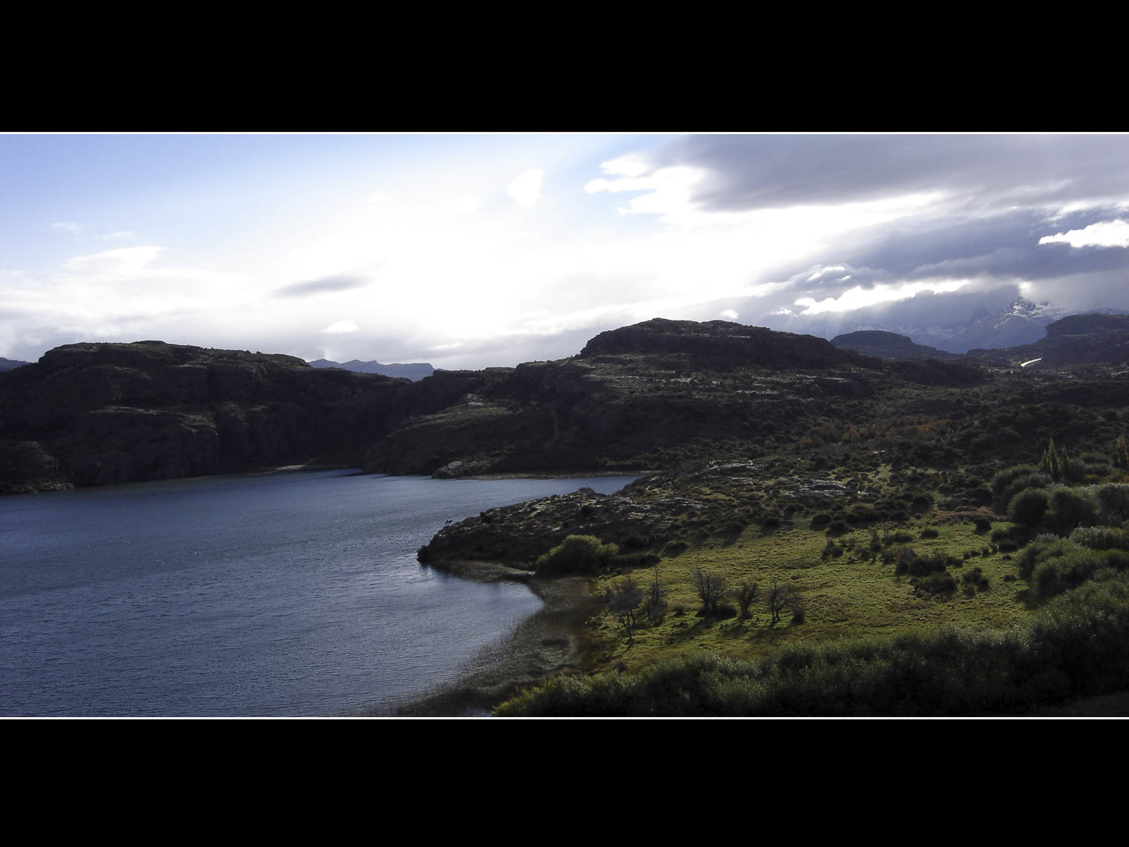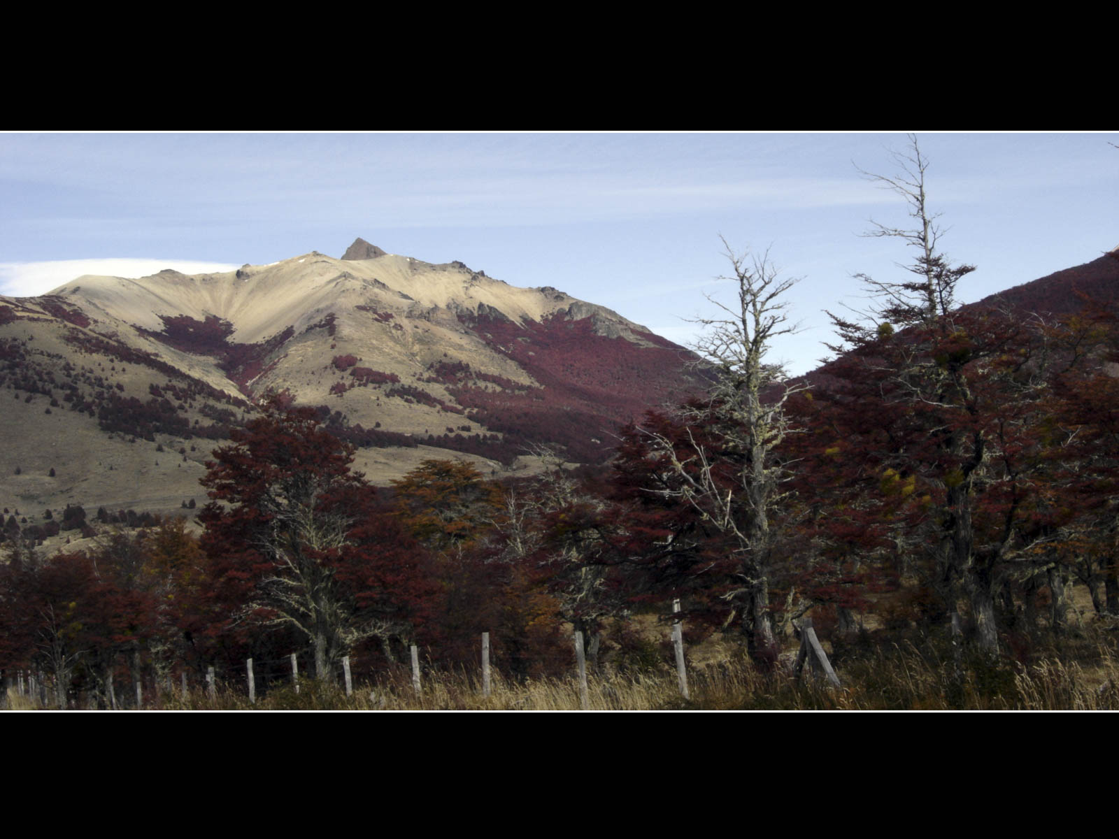 De dag werd met een glimlach gestart, ik zag vanuit mijn bed een wolkenloze helblauwe hemel. Voor vandaag stonden onze laatste kilometers over de Carretera Austral ingepland. De – hier nog steeds geasfalteerde – Carretera voerde ons doorheen het Reserva National Cerro Castillo. De omgeving was in bijzonder gezellige herfsttinten gehuld, het was er mooi fietsen tussen de koperrode, olijfgroene en goudgele bomen. De lunch moesten we, wegens te koud, vervroegd afbreken. Ik poogde me te herinneren wanneer we voor het laatst, wegens te warm, tijdens de lunchpauze de schaduw hadden opgezocht. Na 90 kilometer kwamen we bovenop Portezuelo del Diablo te staan, de (lichtlopende) col van 1130 meter was normaliter mijn laatste verblijf boven de 1000 meter van deze trip. Tijdens de afdaling – nu met helm – deed ik nog een ultieme poging om mijn snelheidsrecord scherper te stellen, ik bleef helaas steken op 76 km/u. Even verderop vervolgde de Carretera Austral zijn weg richting Villa O’Higgens. Wij namen, met enige spijt in het hart maar noodgewongen wegens geen ferries verderop, de afslag naar Puerto Ibanez. Op de dirt-road kon ik tot mijn tevredenheid vaststellen dat het comfortabel fietsen was met mijn nieuwe ProTrack-achterband. Na 30 kilometer hoofdzakelijk afdalen bereikten we lago General Carrera (zoals de Chilenen het noemen) ofte Lago Buenos Aires (zoals de Argentijnen het noemen). De streek rondom het meer zou van een warm zonnig microklimaat genieten, maar toen wij er aankwamen zat de zon al terug enkele uren achter een dreigend wolkendek verscholen.