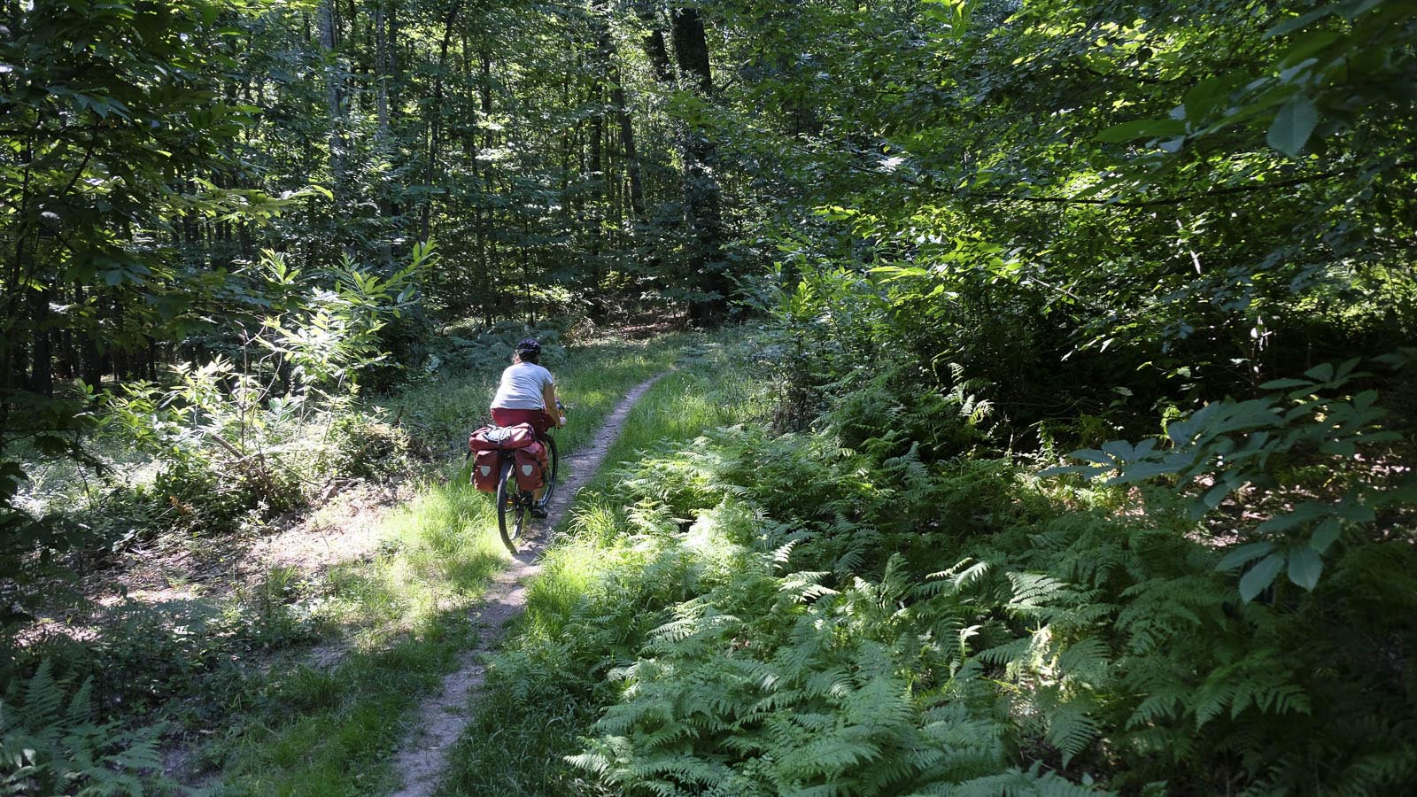 Dit was niet onze eerste keer in de Vogezen. Met de onvolprezen Moorduvels hebben we de Ballons vele jaren lang met de koersfiets opgereden. Maar tot onze verbazing komen we deze keer in heel andere Vogezen terecht: die van de chemins en routes forestières. Acht dagen lang fietsen we tussen de beuken, esdoorns, eiken, dennen, sparren, noem maar op. Steeds in de verkoelende schaduw van hun bladeren met nu en dan een opening in het bladerdak wat een weids zicht op de Alsace oplevert. Daarenboven komen we geen kat tegen. Wel veel wild: een dagelijkse portie hindes, eekhoorntjes, everzwijnen en roofvogels. Wat tot onze grote vreugde helemaal ontbreekt, is gemotoriseerd verkeer.