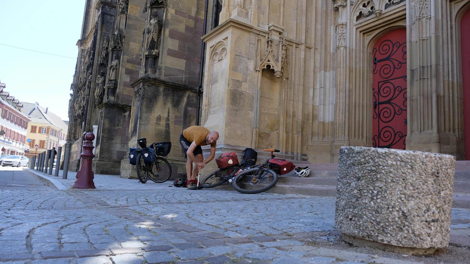 In het verrassend gezellige Mulhouse houden we een rustdag en laden we onze elektronica en de benen terug op voor een bezoek aan het Zwarte Woud. We steken de Rijn over en fietsen na een stop in het groene Freiburg noordwaarts.