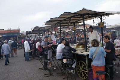 We eindigden waar het allemaal begon, in Marrakech. Terug naar de dansende cobra’s op Djemaa el-Fna, naar de niet aflatende stroom toeristen, naar de zich steeds herhalende winkeltjes met juwelen, kruiden, djellaba’s, sacosjen, schoenen, fruit,… Op een dakterras dronken we nog een laatste whisky Berbère en zagen dat het goed was.