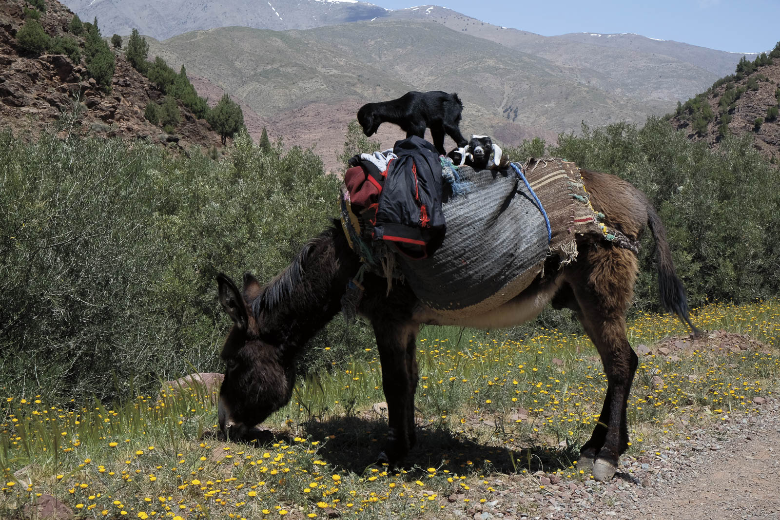 Dit is Mohammed, een antiquair die we ontmoetten op de Tizi ’n Test: hij was maar liefst achttien dagen te voet onderweg geweest van Ouarzazate naar de Tizi ’n Test (ruim 250 kilometer). In dorpen kocht hij oude juwelen op die hij dan in de betere boetieks in Marrakech wou verkopen. Hij verkocht ons een halsketting en zilveren potje (de uitleg om de checken of het om echt zilver gaat laten we hier gemakkelijksheidshalve achterwege, maar wie interesse heeft, laat maar weten).
