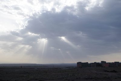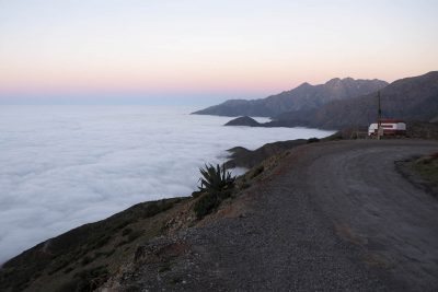 Om terug in Marrakech te geraken moesten we sowieso nog eens de Hoge Atlas over. Onze route liep in twee dagen via Toufrine naar Demnate over de Tizi ‘n Fedrhate en de Tizi ‘n Outfi, met z’n 2.160 meter het dak van onze tocht. We werden andermaal getrakteerd op adembenemende vergezichten. De koninginnenrit kreeg alsnog een apocalyptisch karakter toen we met een windkracht van acht beaufort over de col werden geblazen. Frank en Sabine hadden ons ongetwijfeld aangeraden om binnen te blijven.