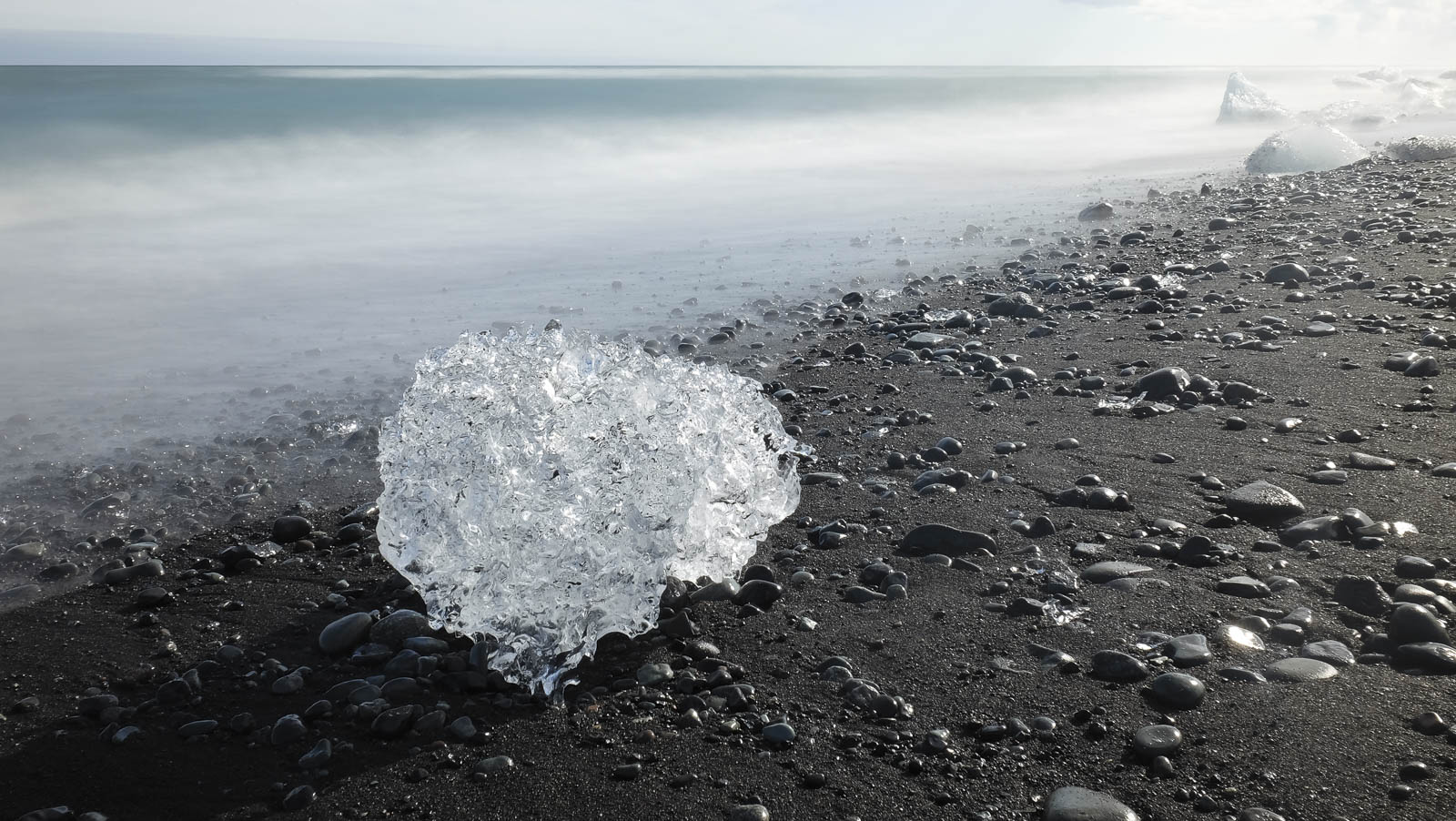Al dat witte natuurschoon bereikte voor ons een hoogtepunt in Jokulsarlon, het grootste gletsjermeer van IJsland. Het ontstond pas in 1934 en het ligt vol kolossale ronddrijvende ijsblokken in alle mogelijke wit- en blauwschakeringen. Speciaal is ook dat het meer uitmondt in de oceaan waardoor ijsblokken weg en weer worden geslingerd door een onstuimige zee. Wij stonden er met open mond naar te kijken en toen bijna alle toeristen verdwenen waren, kampeerden we naast de lagune vol krakend ijs. Het was een waardige afsluiter.