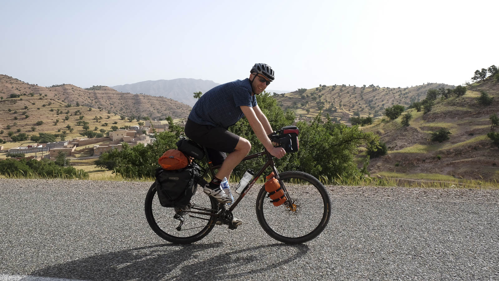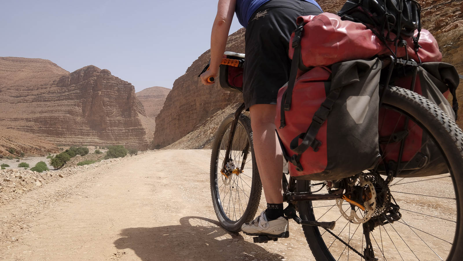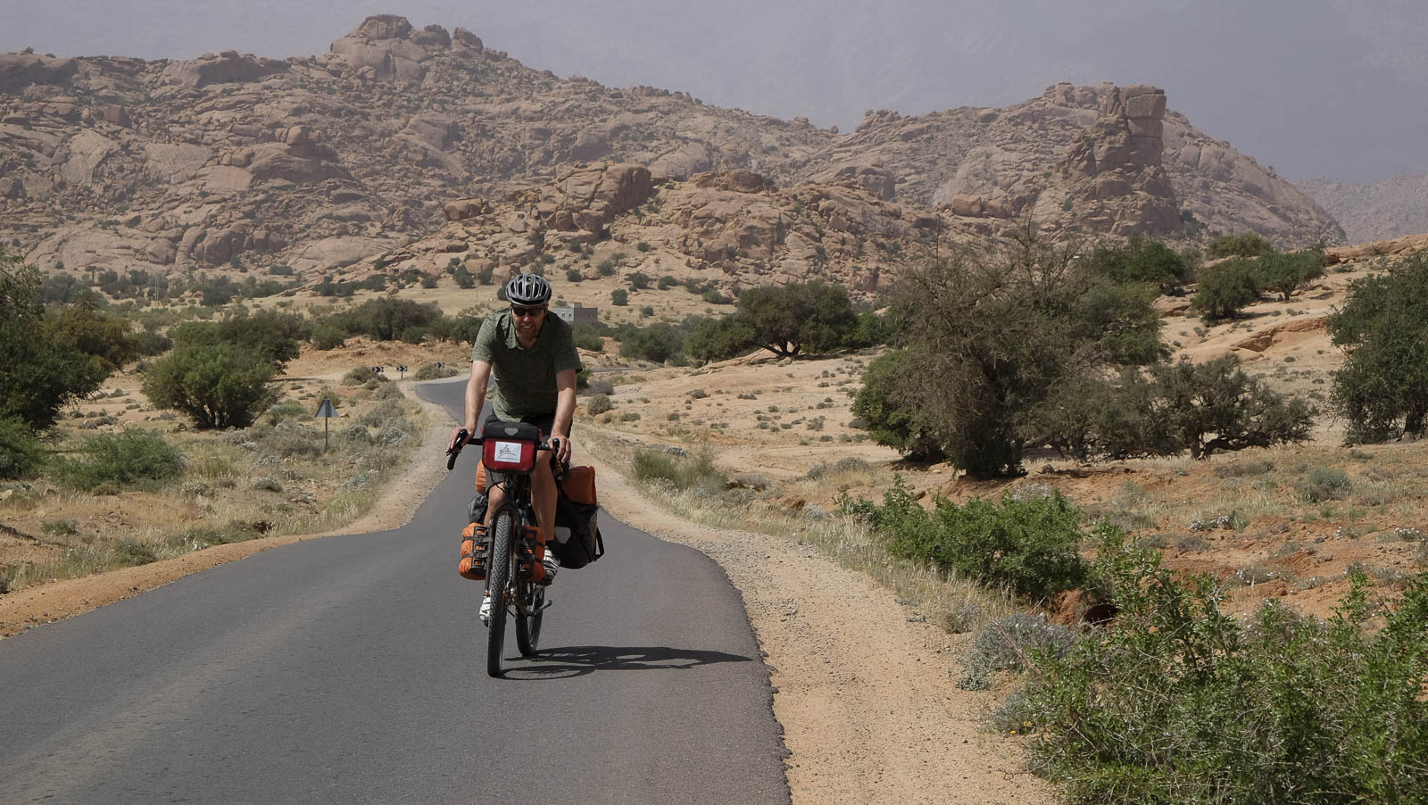 Het vertrekpunt voor onze tocht van twee weken ligt in Agadir. We fietsen door de Anti-Atlas naar de rand van de Sahara en keren via de Atlantische kust terug. Het gebied, ten zuiden van de Hoge Atlas, is immens gevarieerd, ruw en heel vaak relatief onontgonnen terrein. Op onze kaart staan wegen aangeduid die in de praktijk nergens te bespeuren zijn, maar even goed fietsen we over nagelnieuwe wegen met een vers laag je asfalt waar de kaartenmakers nog geen weet van hebben.