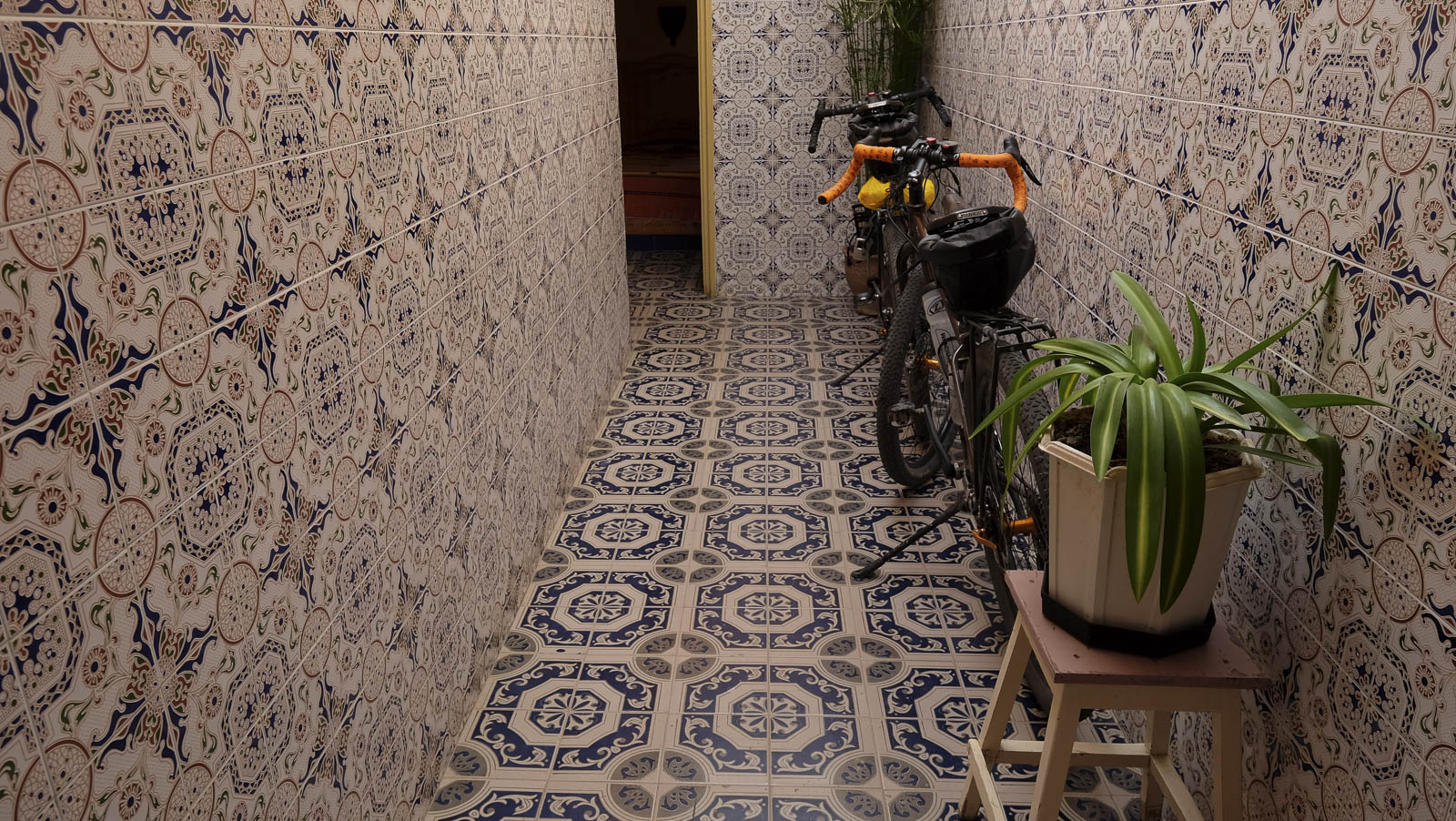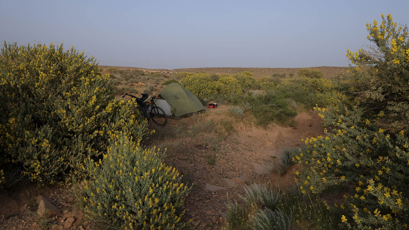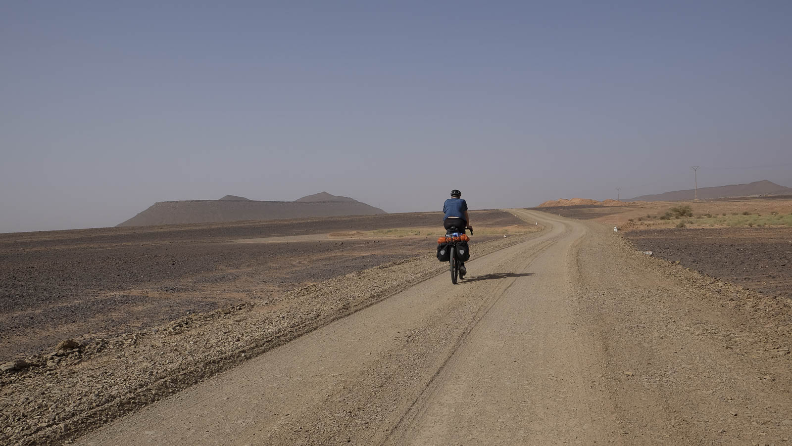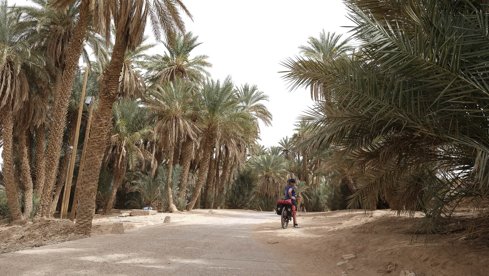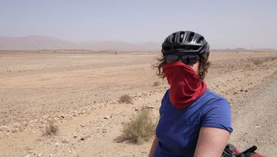 En het weer dan? Wel, wij fietsten twee weken onder een strakblauwe hemel en een zalig warme zon. Er was zelfs in Marokko sprake van een heuse hittegolf. In Azië vergeleken we het fietsen ooit met fietsen onder een warme douche. Hier is een andere huishoudelijke vergelijking van doen: fietsen in de droogkast. Je voelt constant een hete lucht en alle vocht wordt uit je weggezogen. Bedenk wel dat wij ‘voor de zekerheid’ ook een donzen jas, beenstukken, muts en handschoenen bij ons hadden. Tine had nog net voor vertrek een warme onderbroek voor koude nachten thuisgelaten.
