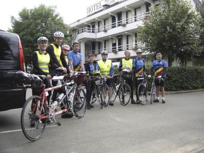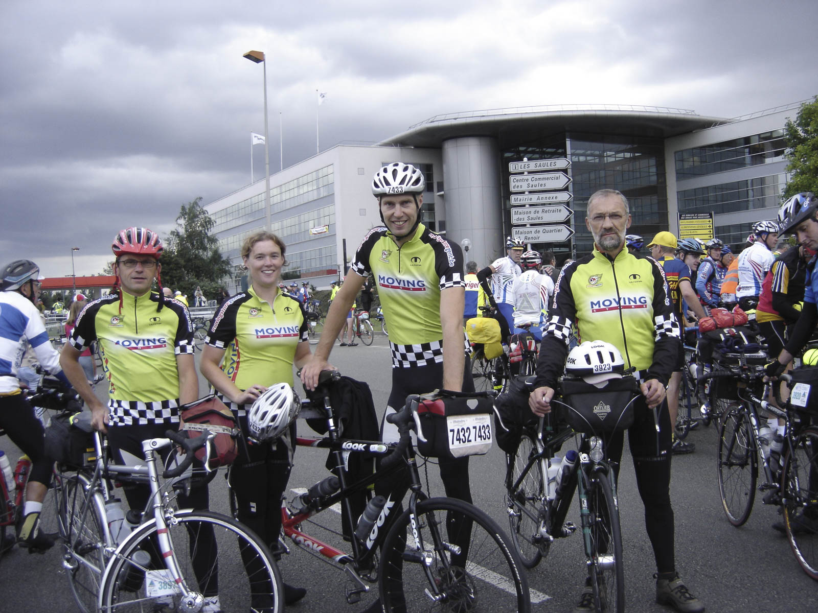 De eerste vijftien kilometers worden we uitgewuifd door de plaatselijke bevolking die deze vierjaarlijkse fietsonderneming wel kan smaken. Door de diversiteit aan voertuigen in onze groep is het vrij nerveus fietsen. Na een uurtje komen we in een verwarrende situatie met tegenliggers terecht. Vrij snel blijkt dat niet zij, maar wel wij fout bezig zijn. De typische menselijke kuddementaliteit heeft ervoor gezorgd dat we en groupe een afslag hebben gemist, met als direct gevolg 20 extra kilometers op de teller. Wanneer we vijf kilometer verder daarenboven nog eens lek rijden is de rust in het hoofd zoek. We leggen de eerste etappe in het donker verder vrij onwennig af en bereiken behoorlijk over onze toeren na 140km om 4u des nachts de eerste bevoorradingsplaats in Mortagne. Hoog tijd voor een worstenbroodje.
