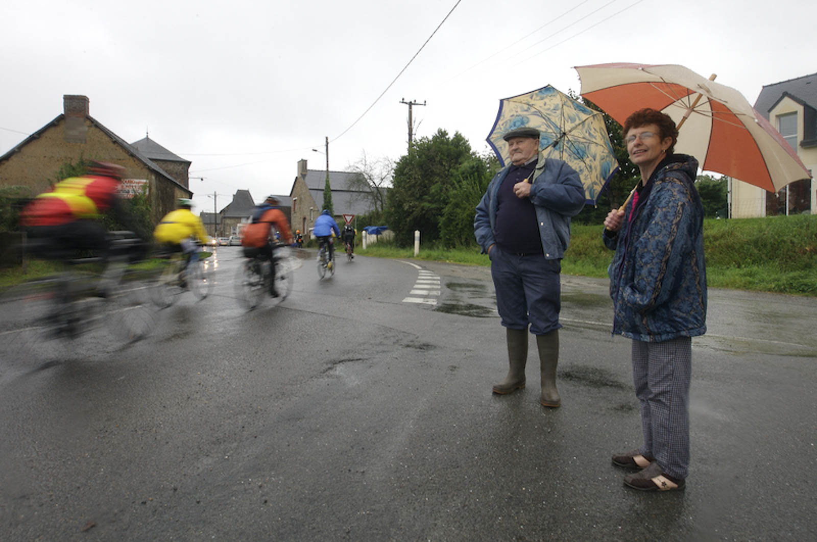 De volgende 54 km denken wij in minder dan twee uur te kunnen afhandelen, maar onze rekenmachine is duidelijk nog niet afgestemd op de Bretoense omgeving. Het parcours heeft duidelijk meer weg van Luik-Bastenaken-Luik dan Gent-Wevelgem en helaas bleek eerder op het seizoen net die laatste onze specialiteit per tandem te zijn. Voor de volledigheid: beste lezer, de hemelsluizen staan nog steeds open.