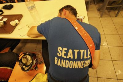Gelukkig ontmoeten we in de wachtzaal enkele Belgische randonneurs. Ze laten zich duidelijk minder snel uit het lood slaan door de spreekwoordelijke oude wijven waardoor het vanzelfsprekend wordt verder te fietsen. Dankzij de nachtelijke tactische bespreking komen we tot het inzicht dat we van controle tot controle moeten fietsen zonder te kijken naar de totale afstand.