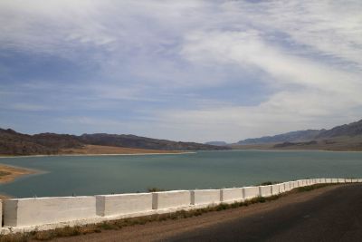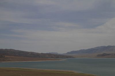 Na 150km nemen we de afslag die ons de bergen in brengt. Nadat we de eerste klim achter de kiezen hebben, worden we tijdens de afdaling getrakteerd op een schitterend turquoise meer. In Koshkor proberen we het nodige proviand samen te krijgen. Dit met matig succes. Op onze mooie wildkampeerplaats worden we geterroriseerd door een roedel muggen die die avond bijgevolg wel het nodige proviand kunnen inslaan.