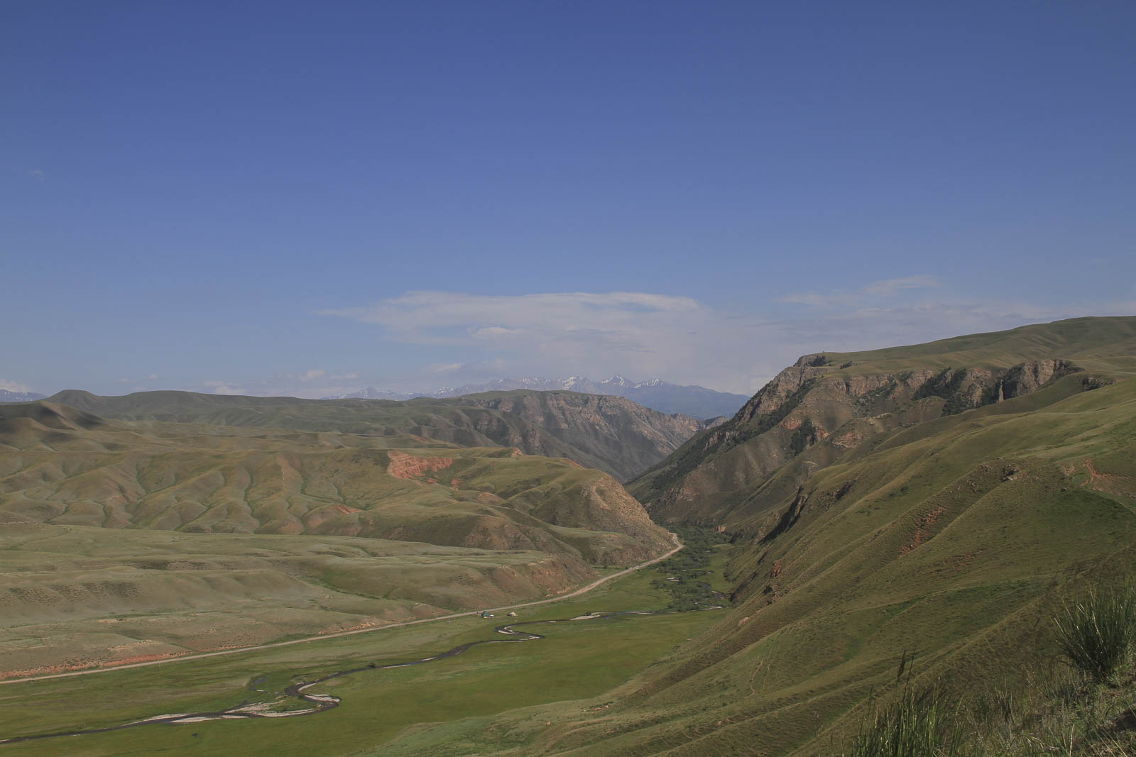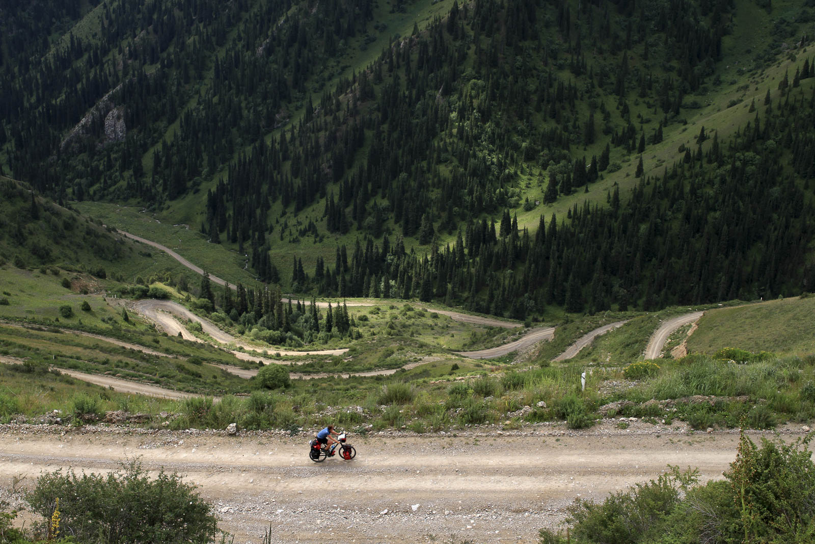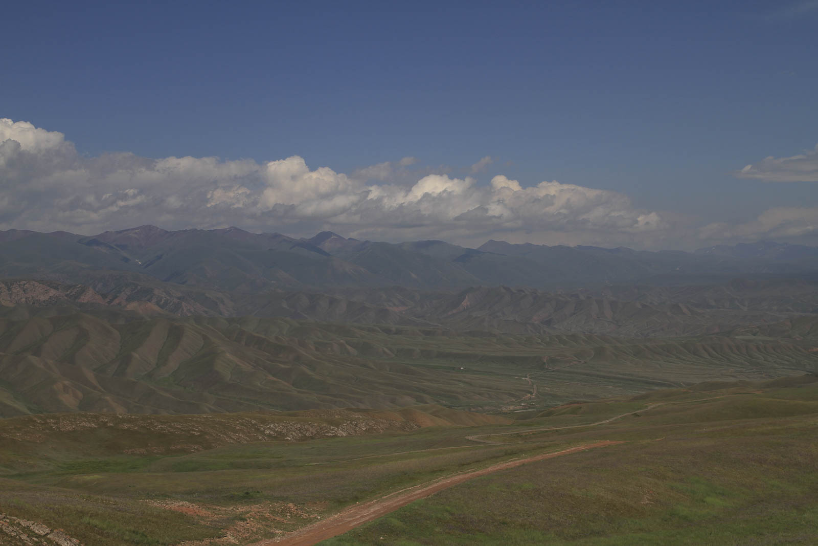 Op aanraden van een lokale gids fietsten we via Ak Tal naar Song Kul. Het eerste gedeelte van de etappe was degelijk geasfalteerd en in dalende lijn. Een verademing na twee weken getrek en geduw op dirtroad.